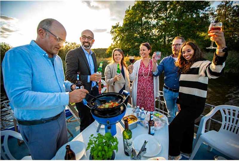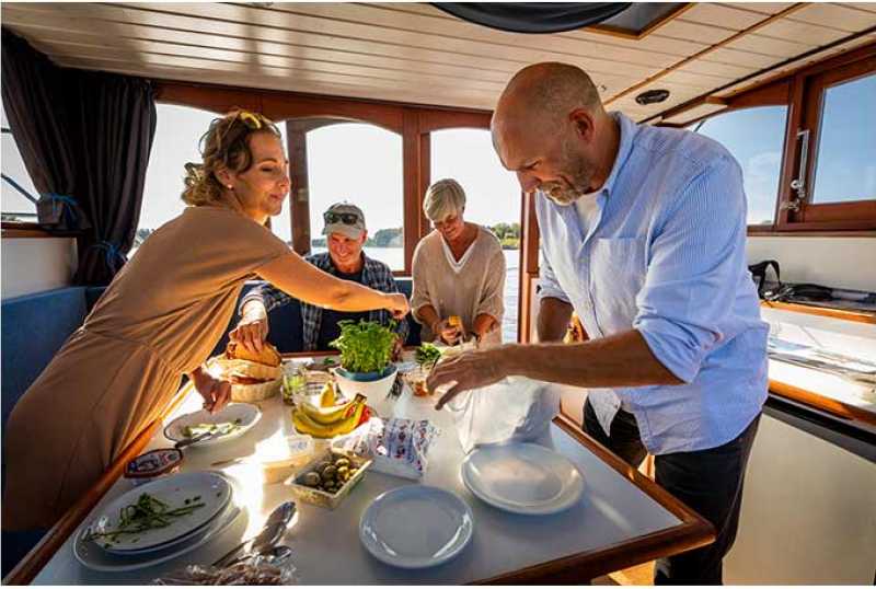 Ein Hausboot-Törn ist ein ganz besonderes Gruppenerlebnis, egal ob mit oder ohne Bootsführerschein. Ob Sie zu zwölft auf einem Boot unterwegs sind oder sich auf mehrere Hausboote verteilen – jeder Tag bringt neue Naturerlebnisse aber auch Herausforderungen zum Wachsen und Zusammenwachsen. Unsere Flotte umfasst 150 Boote in Größen von zwei bis zwölf Personen. Wetten, dass wir für Sie und Ihre Crew das passende Boot finden? Gerne auch für Crewmitglieder auf Rädern oder mit Fellnase …