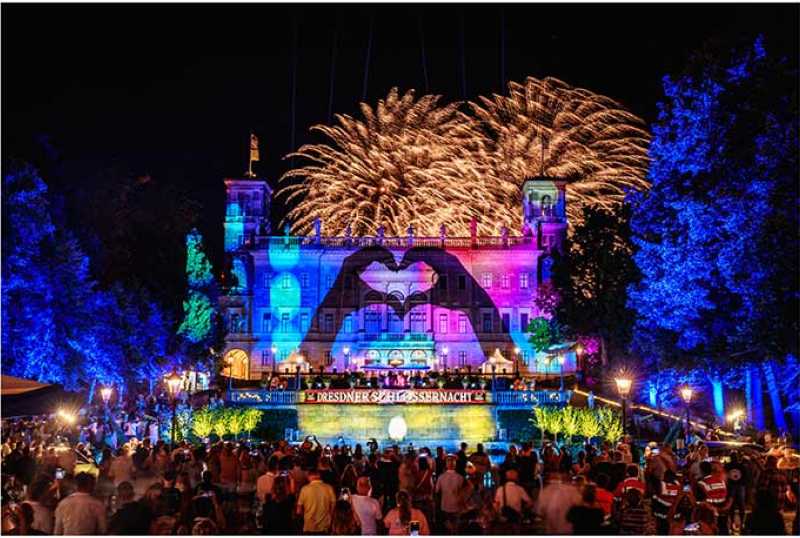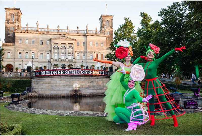 Erleben Sie eine stimmungsvolle Sommernacht in den Parkanlagen von Schloss Albrechtsberg, Lingnerschloss, Schloss Eckberg und der Saloppe mit über 300 Künstlern, 15 Bühnen, 80 Konzerten, 50 Gastronomen, fantasievollen Walking-Acts und einem großen Abschlussfeuerwerk über der Elbe.