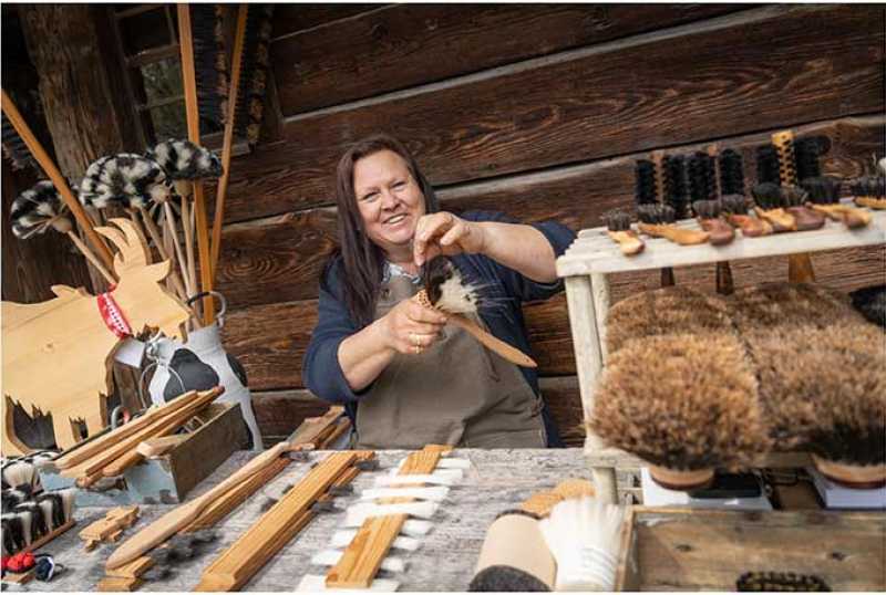 Während der Saison zeigen zahlreiche Handwerker auf dem Museumsgelände traditionelle Handwerkskunst. Im täglichen Wechsel kann man immer mindestens einen von ihnen erleben: den Besenbinder, die Spinnerin, die Weberin, den Schmied, die Schnapsbrennerin und viele mehr.