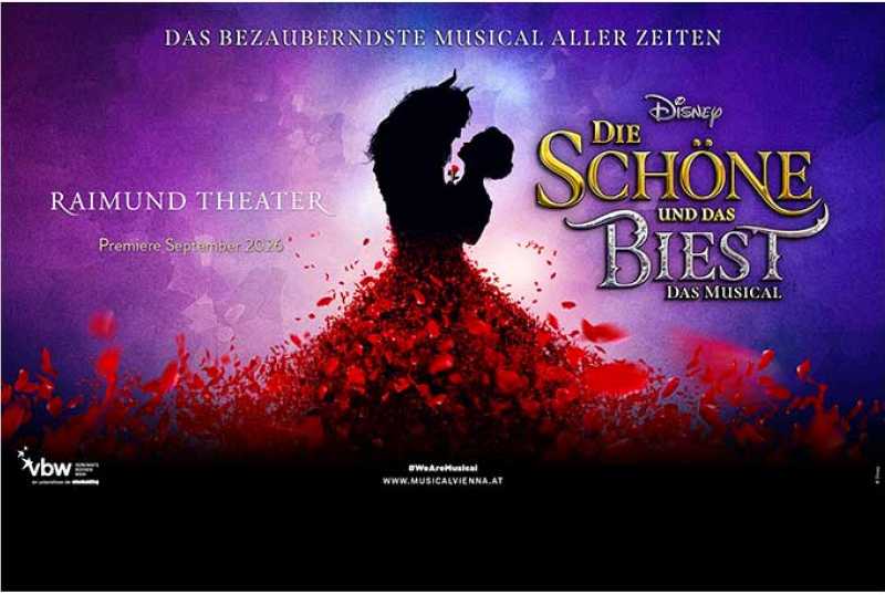 Erleben Sie eines der weltweit erfolgreichsten Musicals, Disneys DIE SCHÖNE UND DAS BIEST, ab Herbst 2026 in Wien! Die berührende Geschichte um Belle und den verwunschenen Prinzen, der nur durch wahre Liebe erlöst werden kann, wird im Raimund Theater in einer brandneuen Produktion wieder zum Leben erweckt – ein märchenhaftes Erlebnis für die ganze Familie!