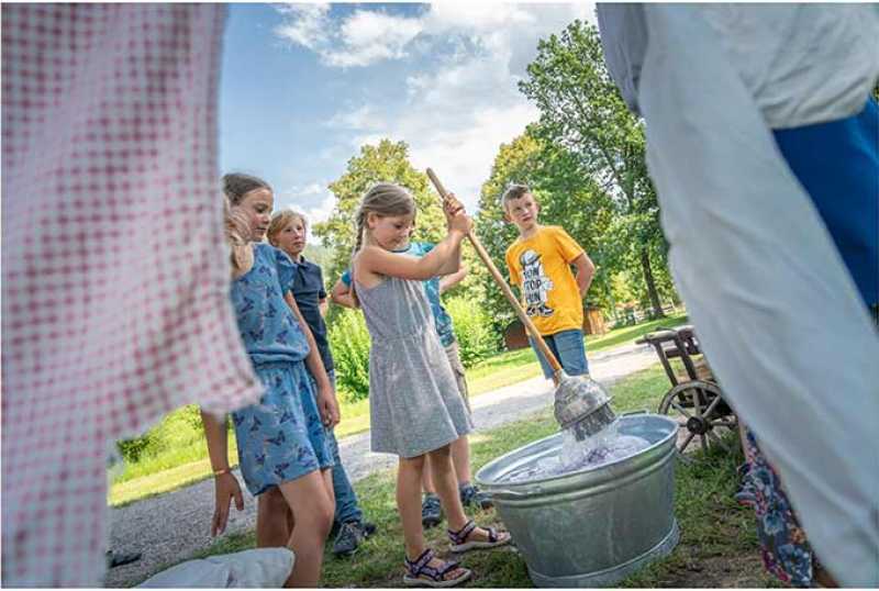 Das Freilichtmuseum richtet sich speziell ebenso an Familien mit Kindern. Überall, wo das Museumsmaskottchen Menne auftaucht, erwartet die kleinen Museumsgäste ein Angebot zum Mitmachen. Der große Erlebnisspielplatz und ein Waldlabyrinth laden zu einer Erkundungstour ein, während in der Menne-Tenne im Falkenhof allerlei Holzspiele und –spielzeuge ausprobiert werden können.